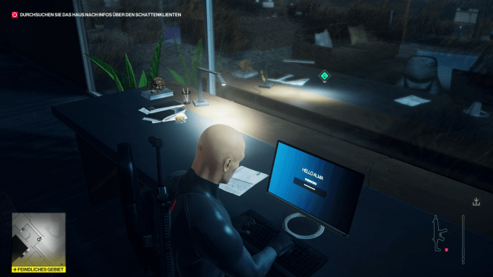 Inside the house, there is a hallway that connects to a technology room. Inside the technology room, there is computers, tech gear, and weaponry.